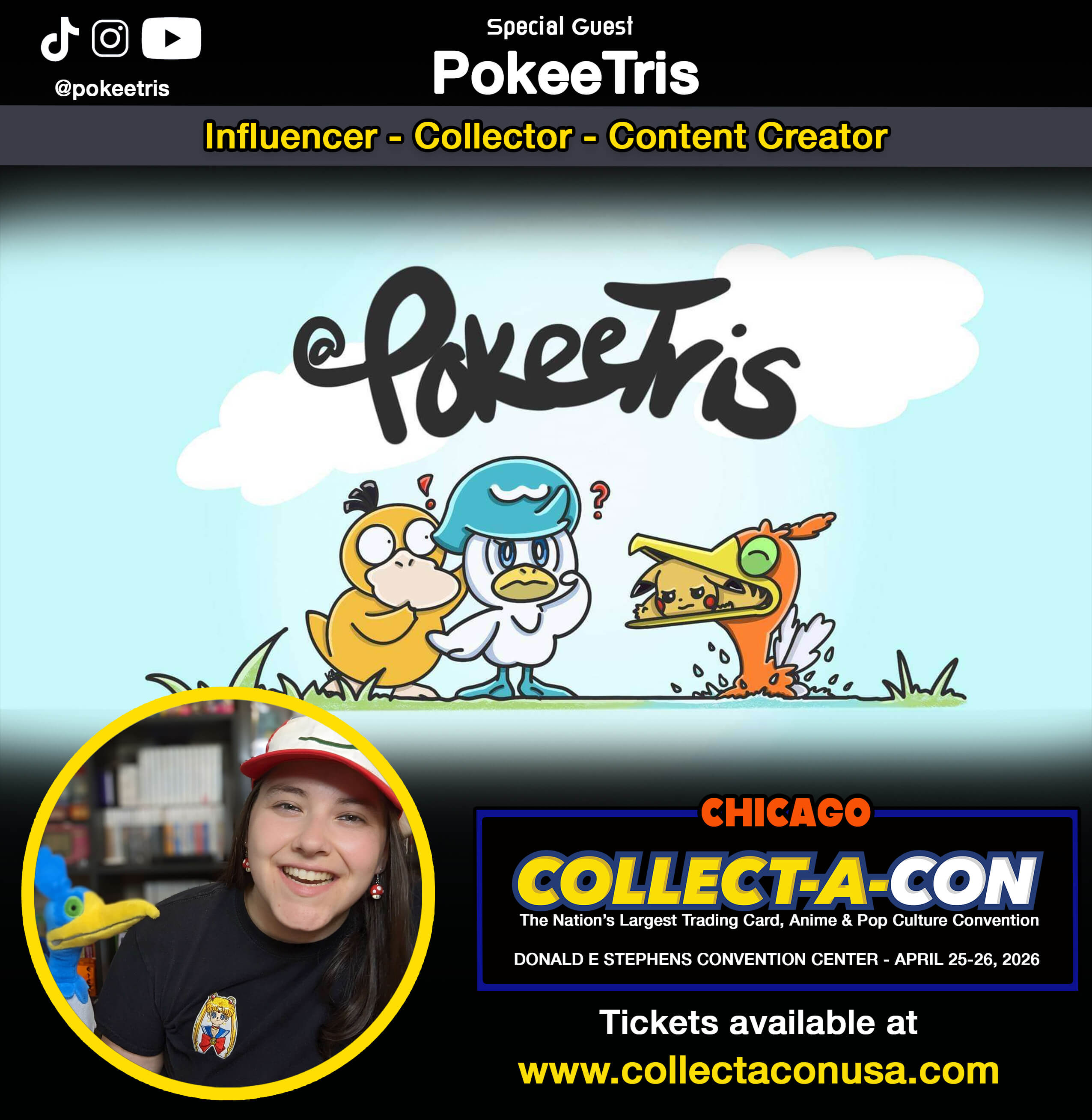 Chicago Special Guests Cody Wirz | December 7, 2023 Buy Tickets Soulja Boy Sean Schemmel Linda Young Luci Christian Justin Cook Terri Hawkes Stephanie Young Erica Schroeder Veronica Taylor Ian Sinclair Cherami Leigh Mark Whitten Michelle Rojas Jason Paige Goat Breakers PokeeTris Powdr TCG More Guests