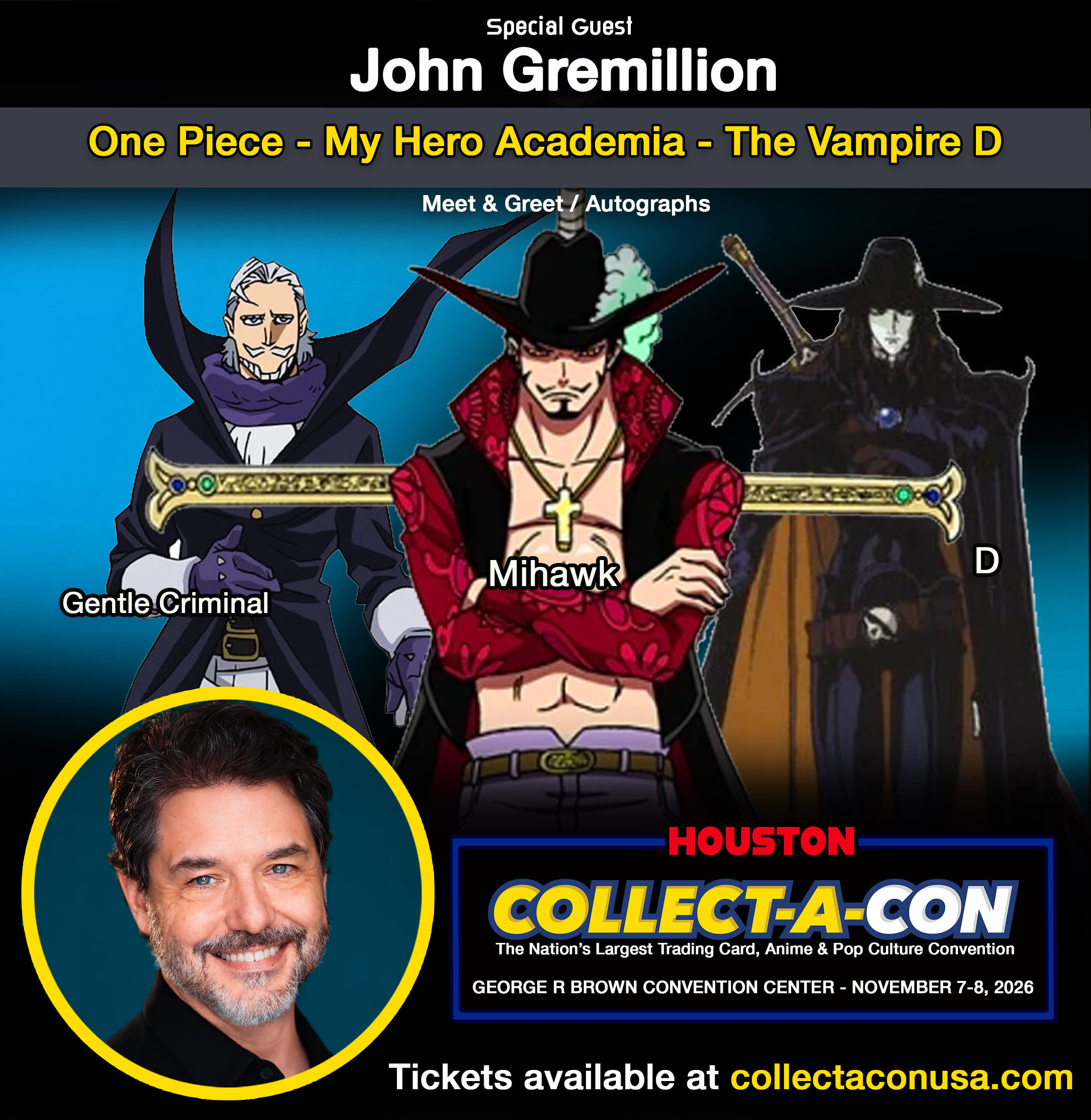 Houston2 Special Guests Cody Wirz | December 7, 2023 Buy Tickets Sean Schemmel Trina Nishimura Dan Green Eric Stuart John Gremillion Performing Artist Generic More Guests