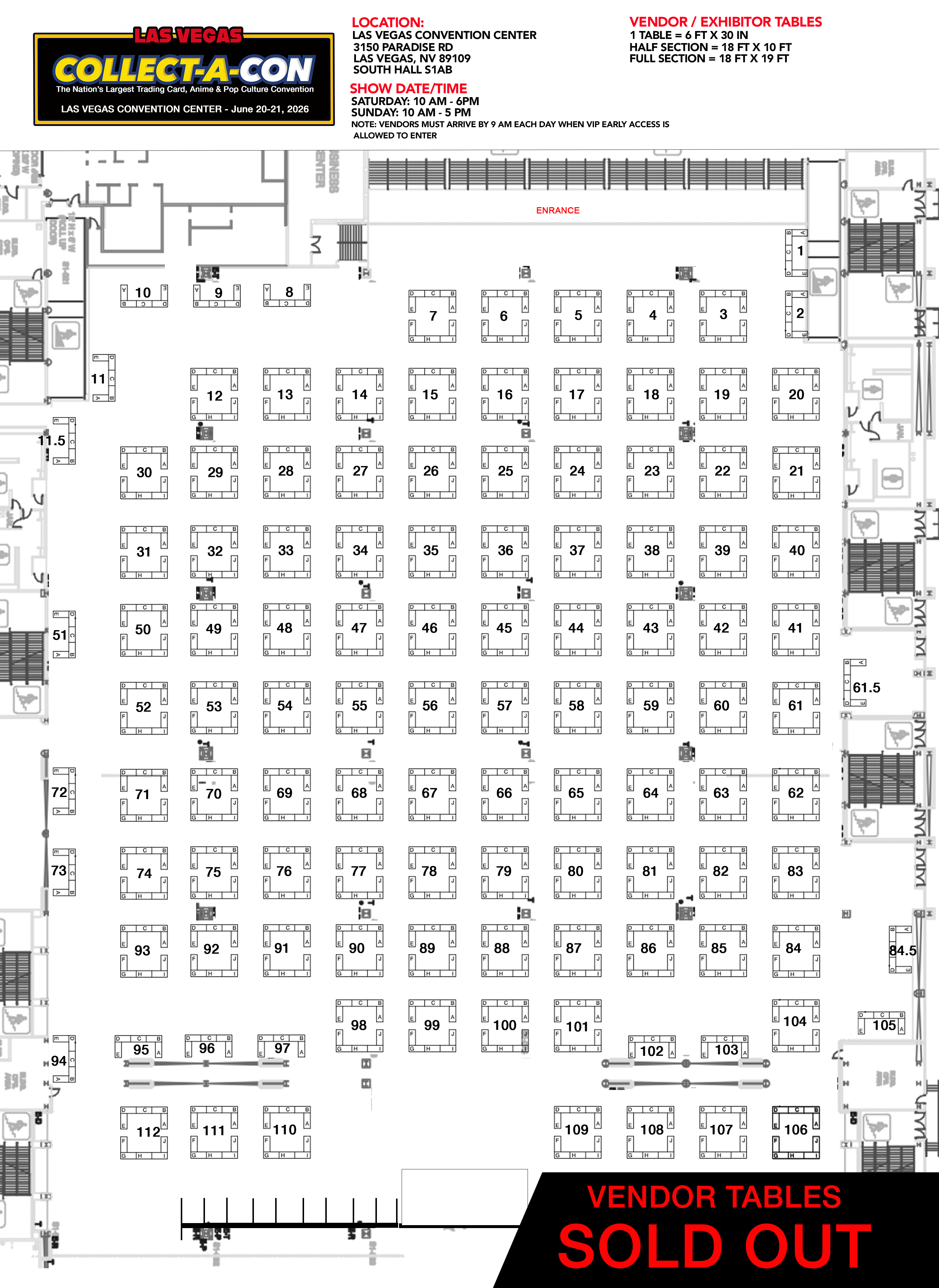 - Order includes the listed number of tables and ONLY that amount. Any vendor using additional Collect-A-Con tables that are not included in their order will be charged an additional $150 per table at the time of the show.