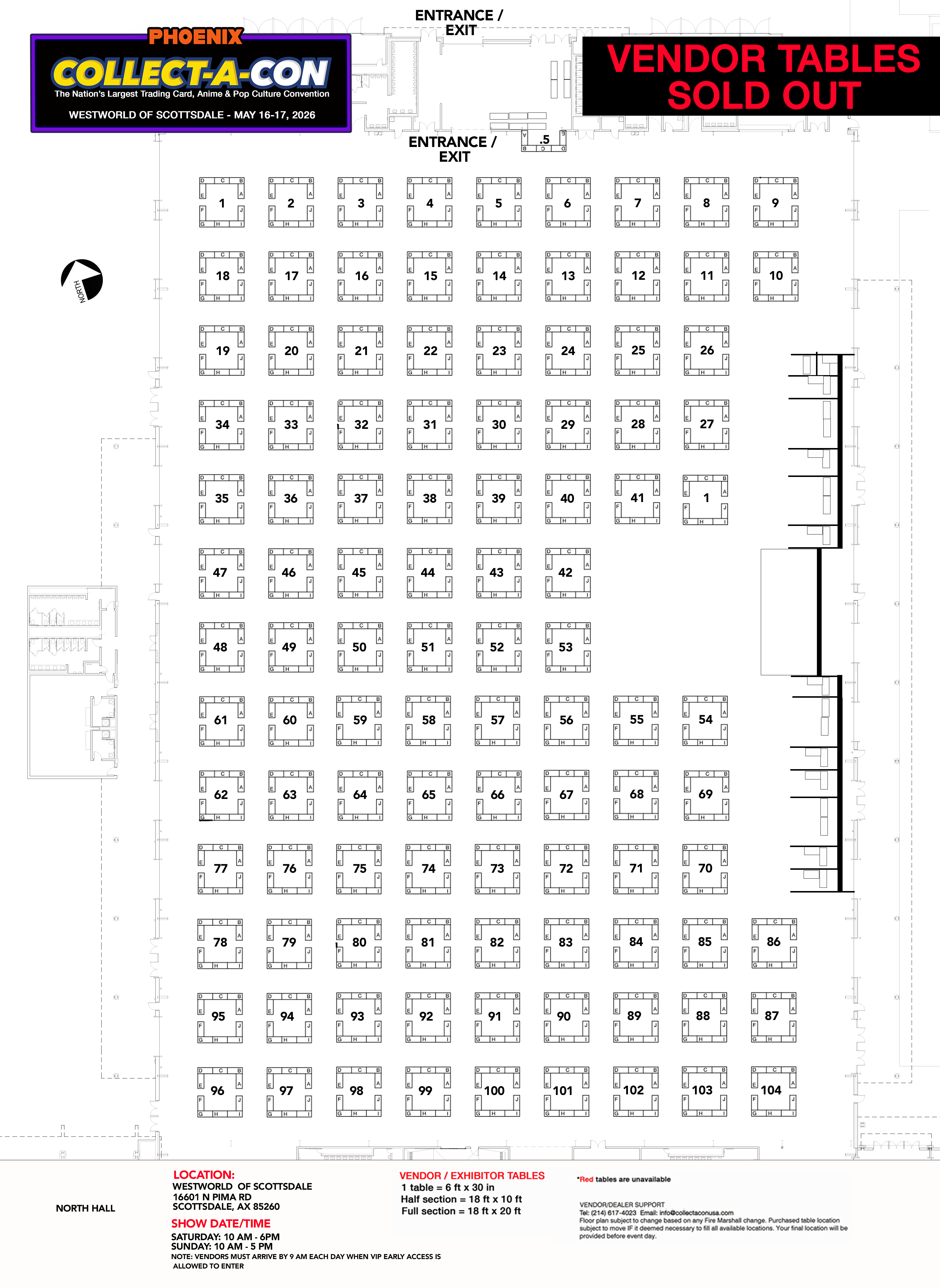 - Order includes the listed number of tables and ONLY that amount. Any vendor using additional Collect-A-Con tables that are not included in their order will be charged an additional $150 per table at the time of the show.